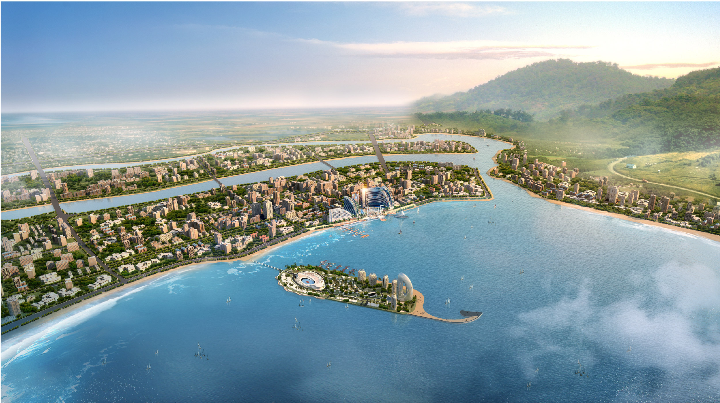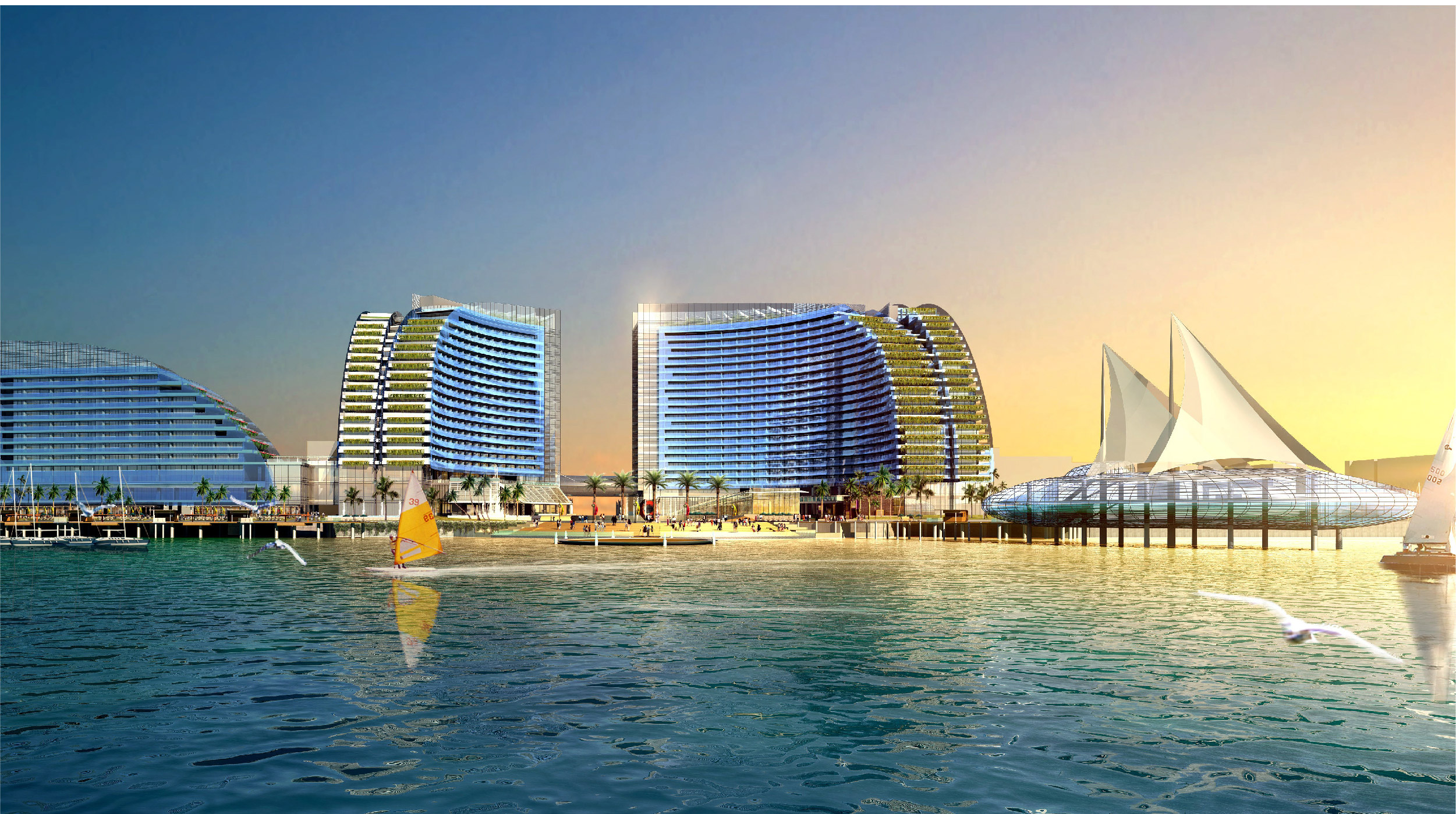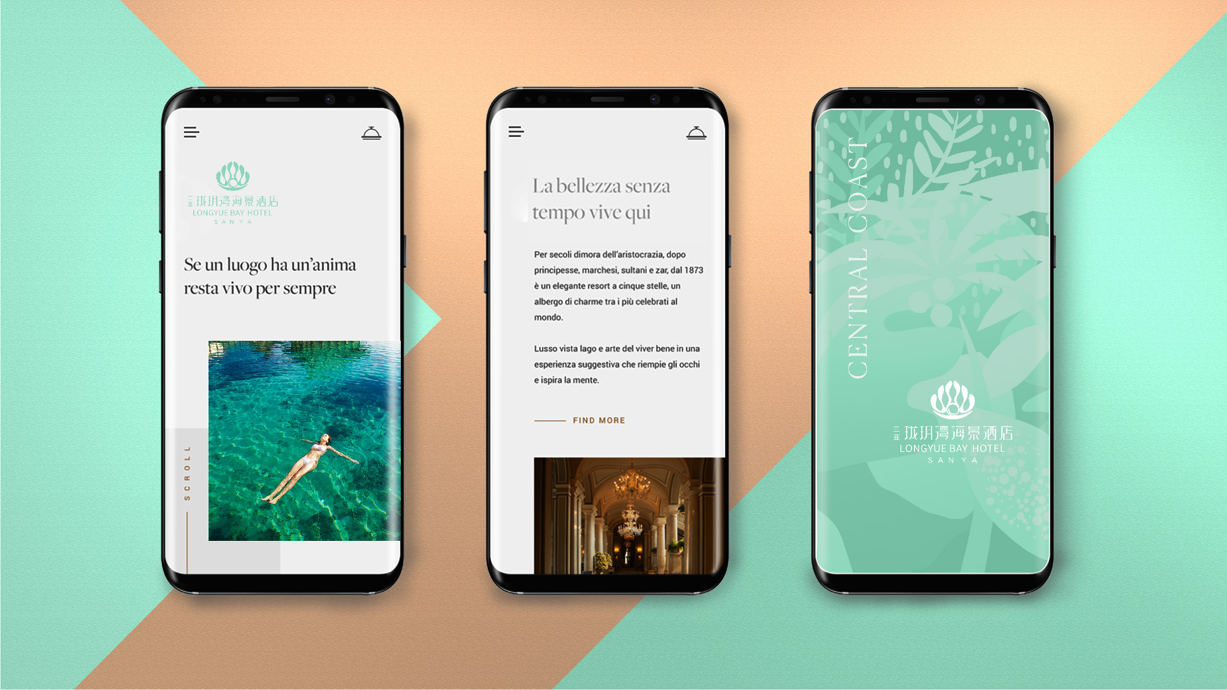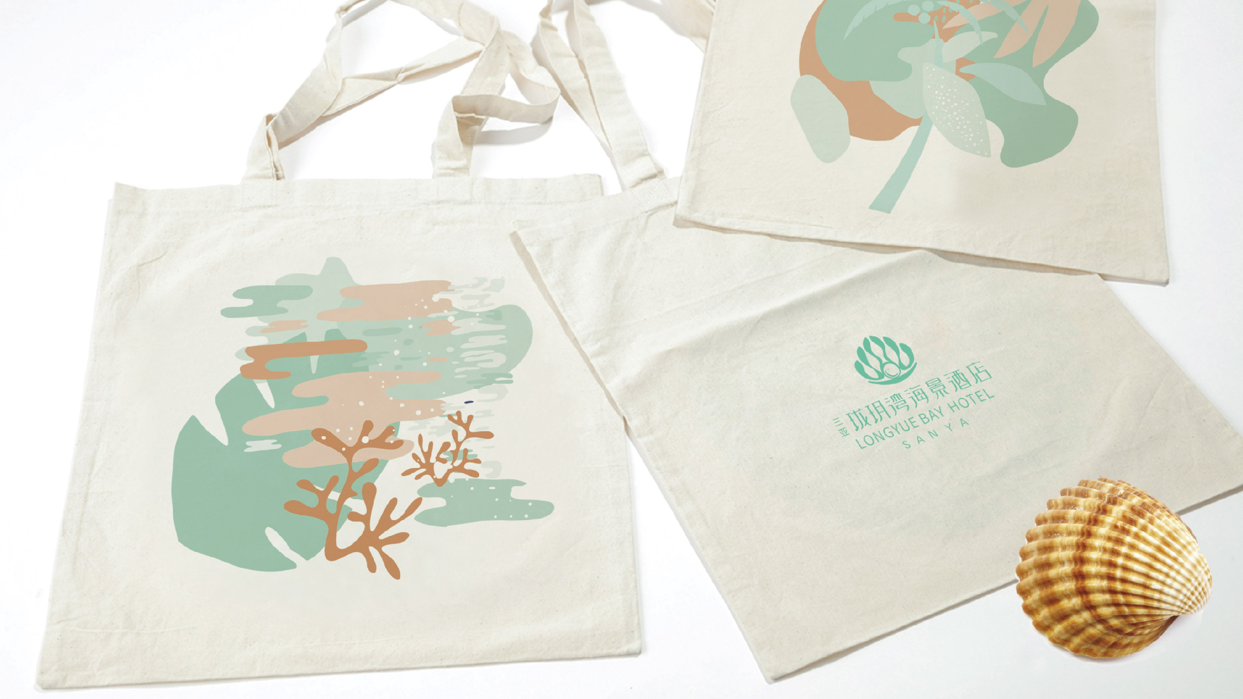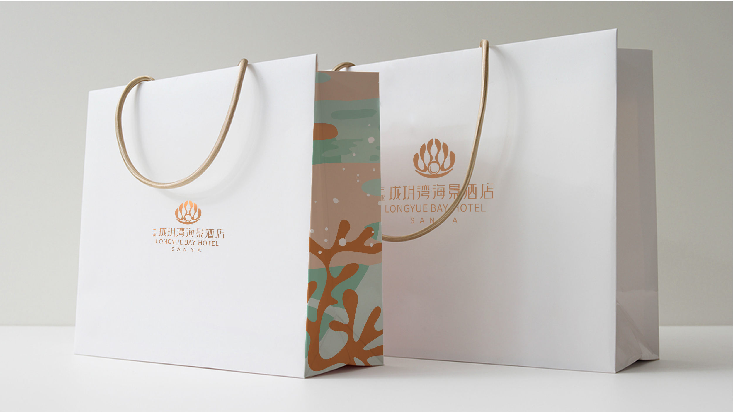 本案品牌设计从开阔的海景与独特的地理风情中汲取灵感,以“贝壳含珠”设计理念,弧形柔美线条,传递珑玥湾海景酒店的妙曼美景,宛如遗落在三亚湾上一颗璀璨的明珠,静谧而遗世独立。