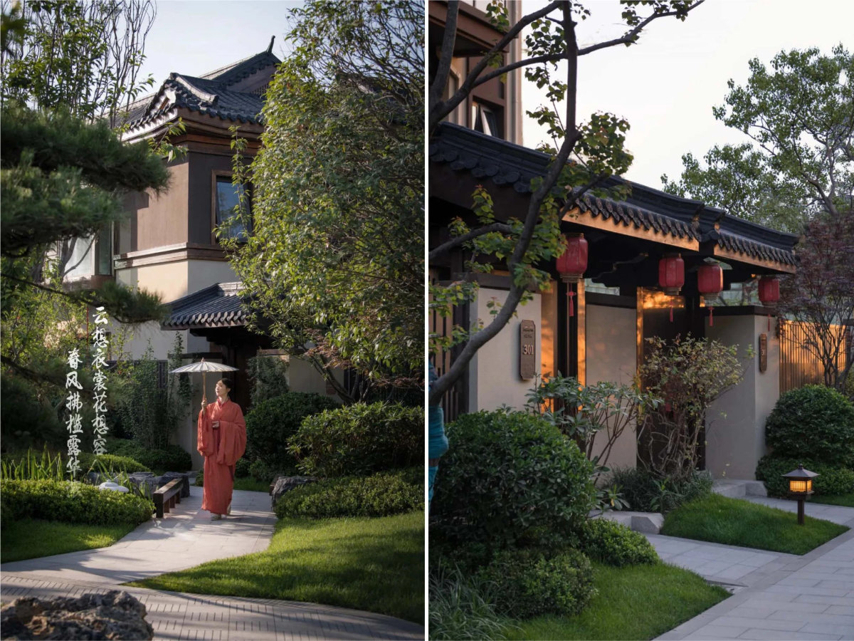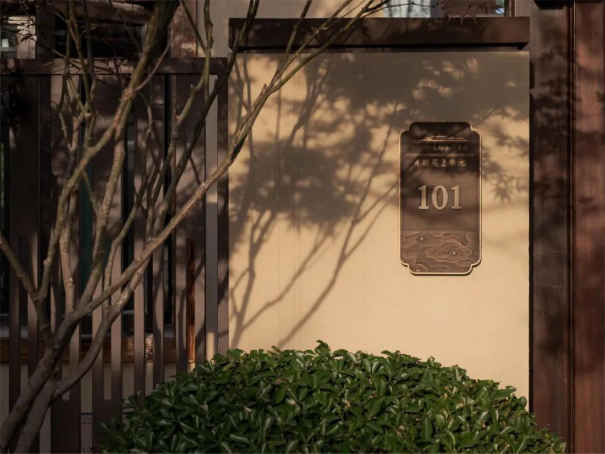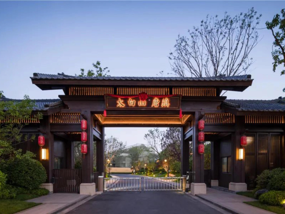 唐镇康养住宅区,贯通山水文脉,可远观太白巍峨,近抚自然山泉。在导视设计上,依游园之序,以“隐奢”为主调,采用大型依景,细致依唐的创意思路,营造高端康养旅居氛围。