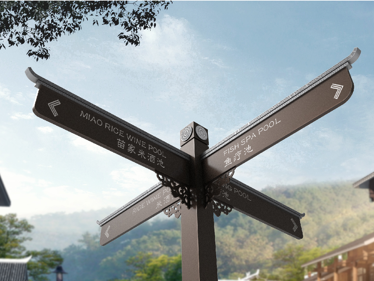 艾米从品牌到导视落地,注重在地元素的活化,深入挖掘贵州少数民族苗侗文化,将神秘古老的元素与现代艺术手法结合,让传统文化再现时代新意,赠予旅行者诗意康养旅居体验,引领人们进入康养疗愈慢生活的异域情境,满足都市人群休闲、放松和心灵释放需求。