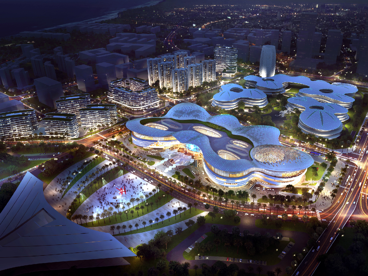 海口国际免税城位于海南省海口市西海岸,是目前世界上最大的单体免税店。法国VP建筑设计事务所以“九州祥云,南海之冠”为灵感,巧妙融入了海南本土特有的自然元素与海洋文化元素,打造了这座海南新地标。