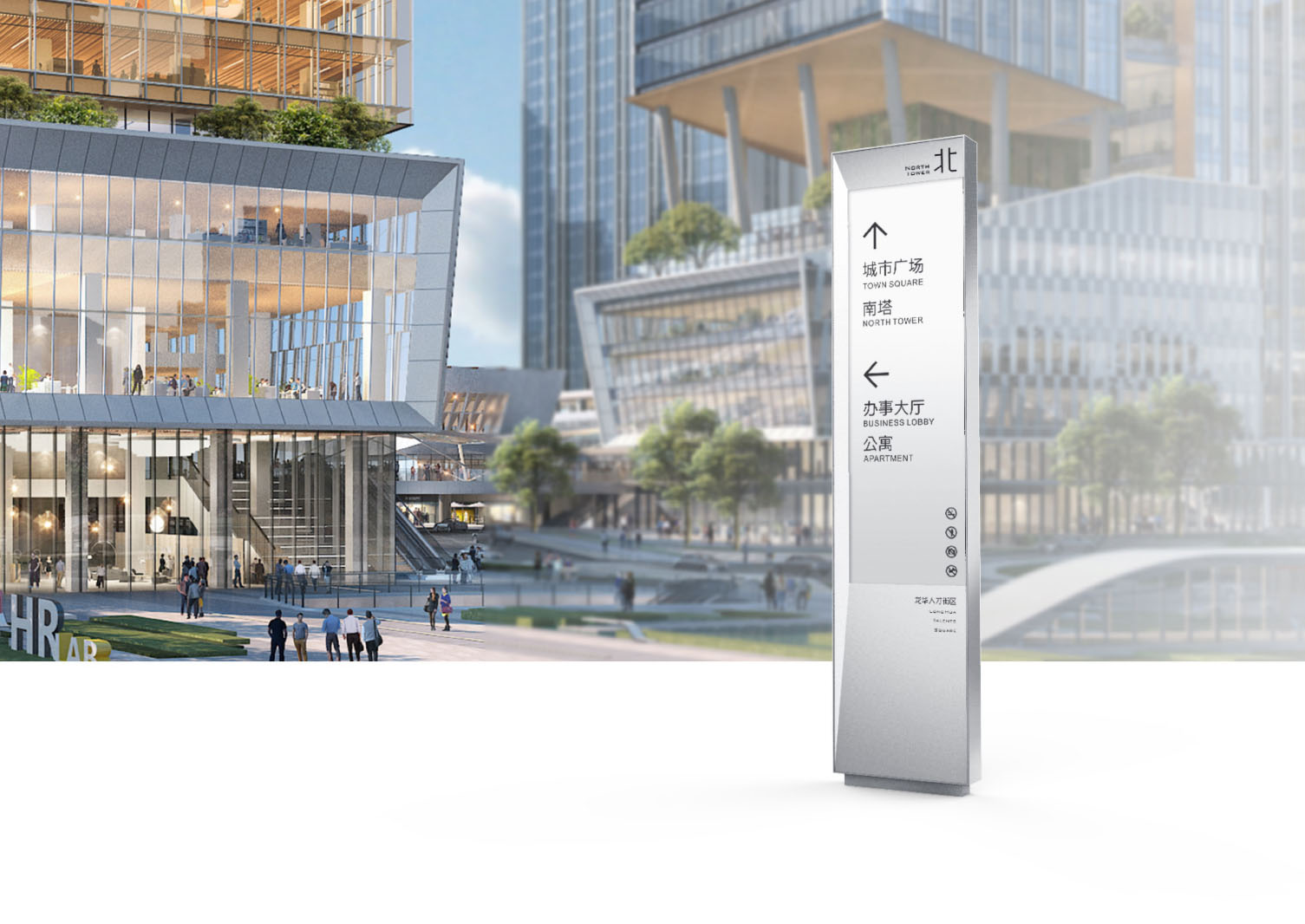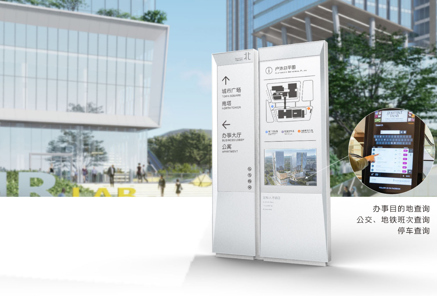 在总体规划上,三栋塔楼错落布局,人才大厅、招聘广场、培训中心等公共裙房和两栋产业大楼沿观澜大道布局。宿舍集中于西北塔楼,与研发大楼间距达80 米,开阔的空间保证了居住品质。