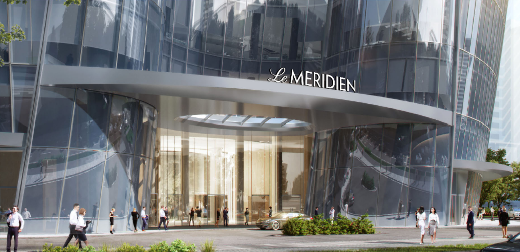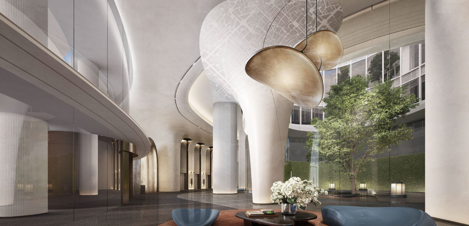 武汉泰康金融中心艾美酒店作为万豪国际集团在武汉的首家艾美酒店,坐落于汉口滨江国际商务区核心,由已故建筑大师扎哈·哈迪德(Zaha Hadid)事务所操刀设计,是其在中国的重要遗作之一。项目占据泰康金融中心T3塔楼1至22层,以261.7米的塔冠高度融入由11栋超高层建筑构成的滨江天际线,与周大福金融中心等标志性建筑为邻,重塑武汉城市轮廓。三栋塔楼通过空中连桥串联成环抱式垂直城市综合体,既呼应武汉“三镇”地理特征,又以曲面金属幕墙与玻璃立面呈现流动的江波韵律,将“跃出水面的江豚”生态意象转化为超现代地标。